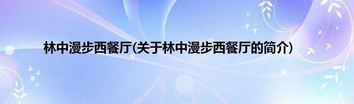 大家好,林中漫步西餐厅,关于林中漫步西餐厅的简介很多人还不知道,现在让我们一起来看看吧!