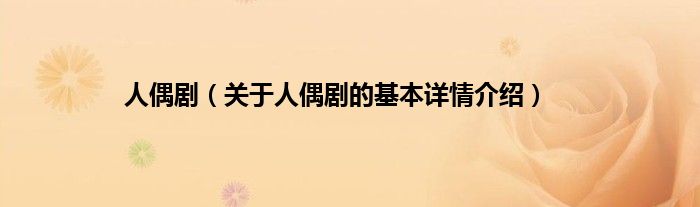 本文关于人偶剧的基本详情介绍就讲解完毕,希望对大家有所帮助。