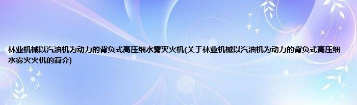 本文关于林业机械以汽油机为动力的背负式高压细水雾灭火机的简介就讲解完毕,希望对大家有所帮助。