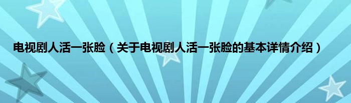 本文关于电视剧人活一张脸的基本详情介绍就讲解完毕,希望对大家有所帮助。