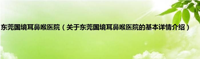 本文关于东莞国境耳鼻喉医院的基本详情介绍就讲解完毕,希望对大家有所帮助。