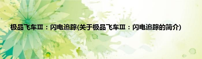 本文关于极品飞车Ⅲ:闪电追踪的简介就讲解完毕,希望对大家有所帮助。