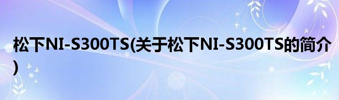 本文关于松下NI-S300TS的简介就讲解完毕,希望对大家有所帮助。