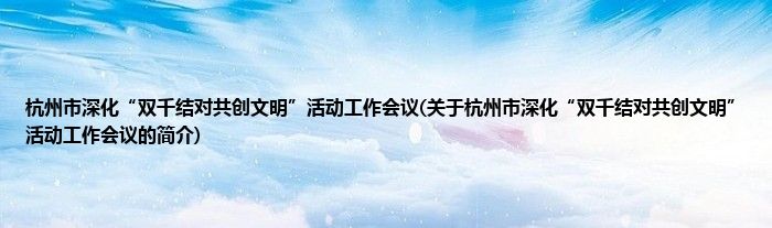本文关于杭州市深化“双千结对共创文明”活动工作会议的简介就讲解完毕,希望对大家有所帮助。