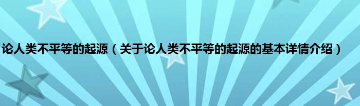 本文关于论人类不平等的起源的基本详情介绍就讲解完毕,希望对大家有所帮助。