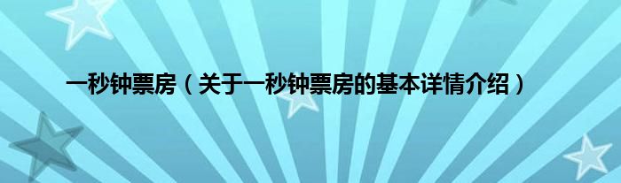 本文关于一秒钟票房的基本详情介绍就讲解完毕,希望对大家有所帮助。
