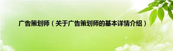 本文关于广告策划师的基本详情介绍就讲解完毕,希望对大家有所帮助。