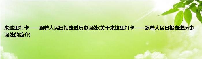 本文关于来这里打卡——跟着人民日报走进历史深处的简介就讲解完毕,希望对大家有所帮助。