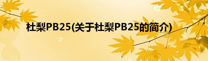 本文关于杜梨PB25的简介就讲解完毕,希望对大家有所帮助。