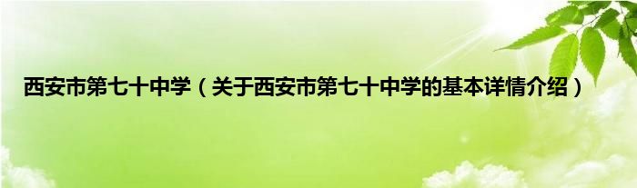 本文关于西安市第七十中学的基本详情介绍就讲解完毕,希望对大家有所帮助。
