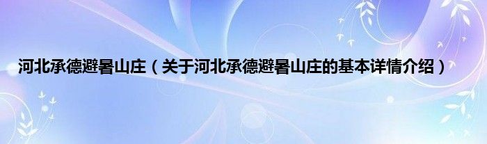 本文关于河北承德避暑山庄的基本详情介绍就讲解完毕,希望对大家有所帮助。