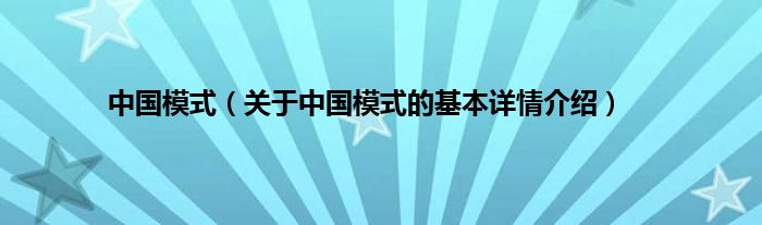 本文关于中国模式的基本详情介绍就讲解完毕,希望对大家有所帮助。