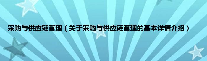 本文关于采购与供应链管理的基本详情介绍就讲解完毕,希望对大家有所帮助。