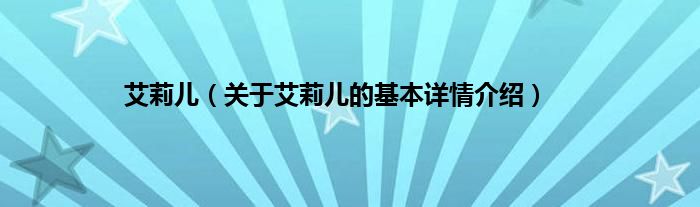 本文关于艾莉儿的基本详情介绍就讲解完毕,希望对大家有所帮助。