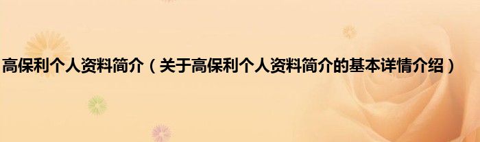 本文关于高保利个人资料简介的基本详情介绍就讲解完毕,希望对大家有所帮助。