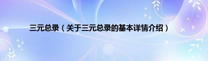 本文关于三元总录的基本详情介绍就讲解完毕,希望对大家有所帮助。