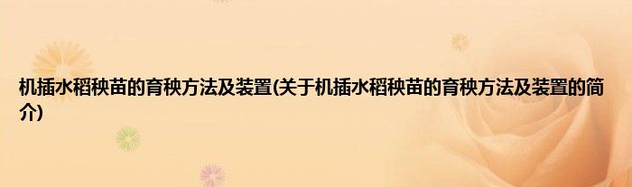 本文关于机插水稻秧苗的育秧方法及装置的简介就讲解完毕,希望对大家有所帮助。