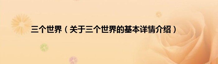 本文关于三个世界的基本详情介绍就讲解完毕,希望对大家有所帮助。