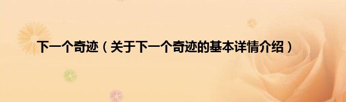 本文关于下一个奇迹的基本详情介绍就讲解完毕,希望对大家有所帮助。