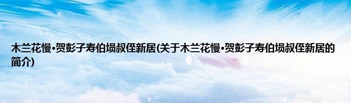 本文关于木兰花慢·贺彭子寿伯埙叔侄新居的简介就讲解完毕,希望对大家有所帮助。