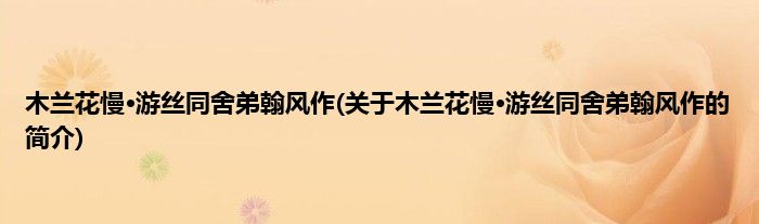大家好,木兰花慢·游丝同舍弟翰风作,关于木兰花慢·游丝同舍弟翰风作的简介很多人还不知道,现在让我们一起来看看吧!
