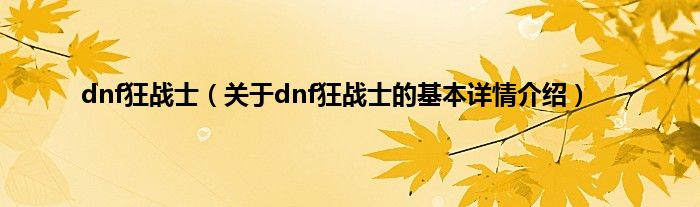 本文关于dnf狂战士的基本详情介绍就讲解完毕,希望对大家有所帮助。