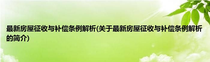本文关于最新房屋征收与补偿条例解析的简介就讲解完毕,希望对大家有所帮助。