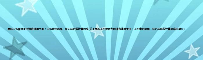 本文关于最新工伤保险条例速查速用手册:工伤索赔流程、技巧与赔偿计算标准的简介就讲解完毕,希望对大家有所帮助。