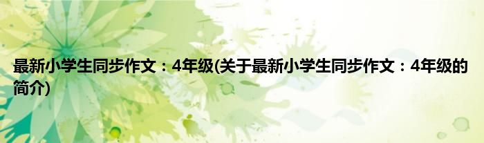 本文关于最新小学生同步作文:4年级的简介就讲解完毕,希望对大家有所帮助。