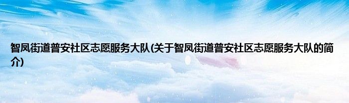 本文关于智凤街道普安社区志愿服务大队的简介就讲解完毕,希望对大家有所帮助。