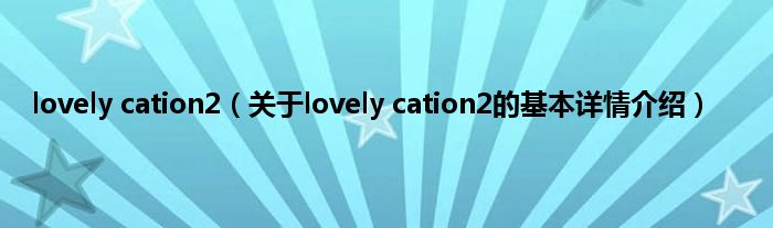 本文关于lovely cation2的基本详情介绍就讲解完毕,希望对大家有所帮助。