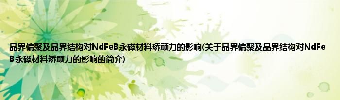 本文关于晶界偏聚及晶界结构对NdFeB永磁材料矫顽力的影响的简介就讲解完毕,希望对大家有所帮助。