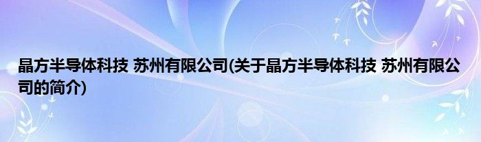 本文关于晶方半导体科技 苏州有限公司的简介就讲解完毕,希望对大家有所帮助。