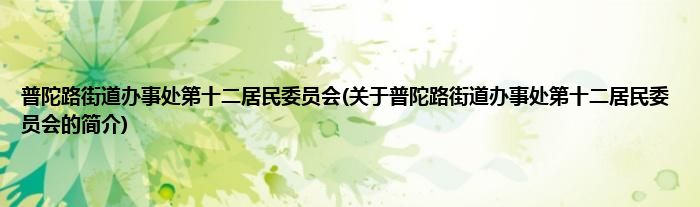 大家好,普陀路街道办事处第十二居民委员会,关于普陀路街道办事处第十二居民委员会的简介很多人还不知道,现在让我们一起来看看吧!