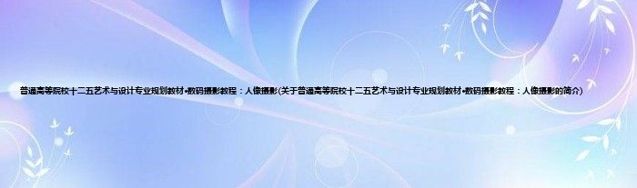 1、 《普通高等院校"十二五"艺术与设计专业规划教材·数码摄影教程:人像摄影》主要内容简介:人像摄影深受摄影爱好者的青睐。