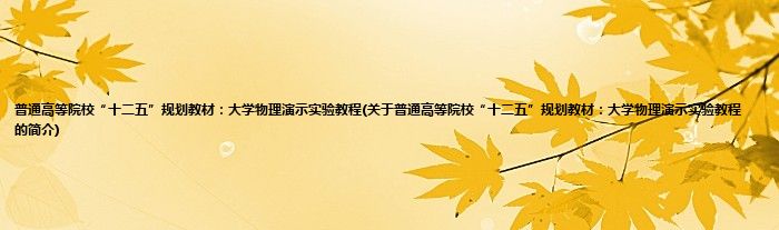 本文关于普通高等院校“十二五”规划教材:大学物理演示实验教程的简介就讲解完毕,希望对大家有所帮助。