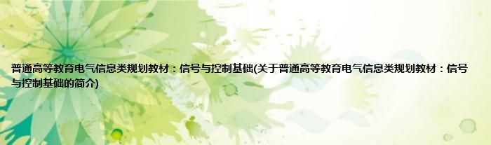 大家好,普通高等教育电气信息类规划教材:信号与控制基础,关于普通高等教育电气信息类规划教材:信号与控制基础的简介很多人还不知道,现在让我们一起来看看吧!