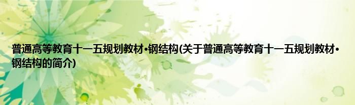本文关于普通高等教育十一五规划教材·钢结构的简介就讲解完毕,希望对大家有所帮助。