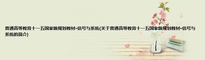 大家好,普通高等教育十一五国家级规划教材·信号与系统,关于普通高等教育十一五国家级规划教材·信号与系统的简介很多人还不知道,现在让我们一起来看看吧!