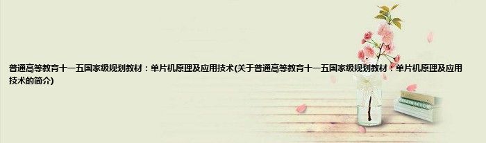 本文关于普通高等教育十一五国家级规划教材:单片机原理及应用技术的简介就讲解完毕,希望对大家有所帮助。