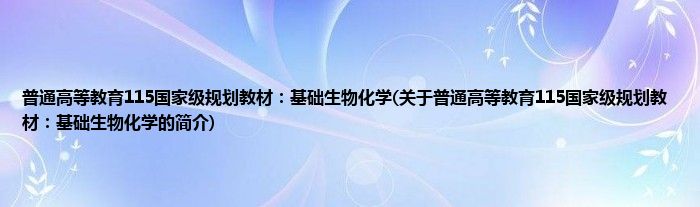 本文关于普通高等教育115国家级规划教材:基础生物化学的简介就讲解完毕,希望对大家有所帮助。