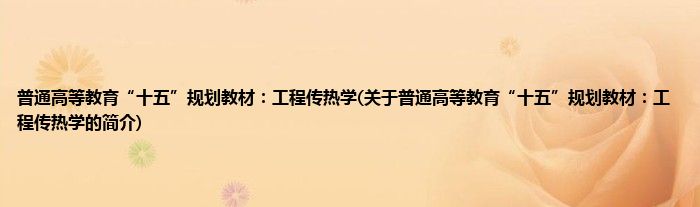 本文关于普通高等教育“十五”规划教材:工程传热学的简介就讲解完毕,希望对大家有所帮助。