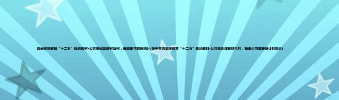 1、 《普通高等教育"十二五"规划教材·公共基础课教材系列:概率论与数理统计》以高等学校经济类数学课程的基本要求为依据,在教学实践的基础上编写而成。