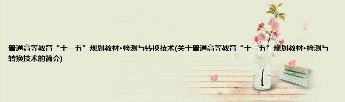 本文关于普通高等教育“十一五”规划教材·检测与转换技术的简介就讲解完毕,希望对大家有所帮助。