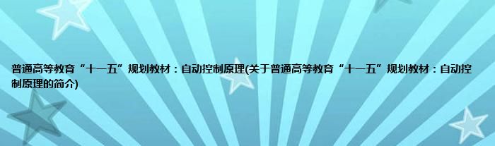 本文关于普通高等教育“十一五”规划教材:自动控制原理的简介就讲解完毕,希望对大家有所帮助。