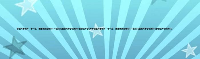 1、 《普通高等教育“十一五”国家级规划教材·21世纪交通版高等学校教材·运输经济学》是一本由人民交通出版社出版的书籍。
