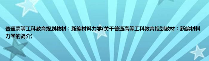 本文关于普通高等工科教育规划教材:新编材料力学的简介就讲解完毕,希望对大家有所帮助。