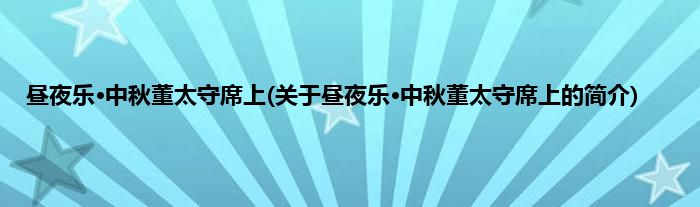 本文关于昼夜乐·中秋董太守席上的简介就讲解完毕,希望对大家有所帮助。