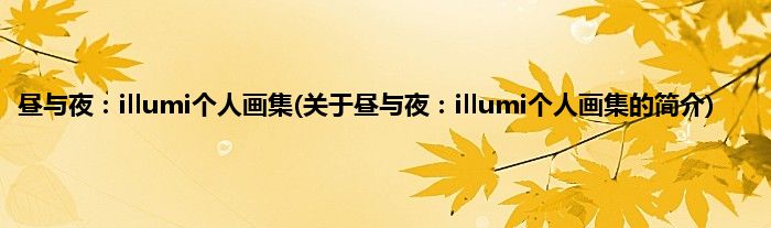本文关于昼与夜:illumi个人画集的简介就讲解完毕,希望对大家有所帮助。
