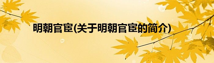 大家好,明朝官宦,关于明朝官宦的简介很多人还不知道,现在让我们一起来看看吧!